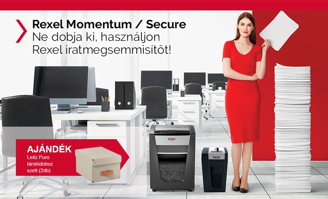 Gondoskodjon a személyes adatokat tartalmazó iratok biztonságos kezeléséről REXEL „Momentum” vagy REXEL „Secure” iratmegsemmisítőkkel és vegye át az ajándékát!