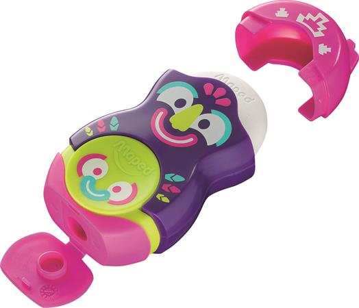 Hegyező és radír, egylyukú, tartályos, MAPED "Fancy", vegyes színek