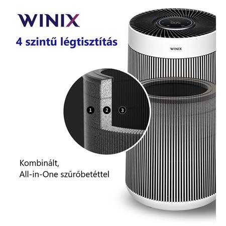 • 4 lépcsős levegőtisztítás: PP előszűrő a porrészecskéknek, szénszűrő, 99.99%-os HEPA szűrő és WINIX PlasmaWave®